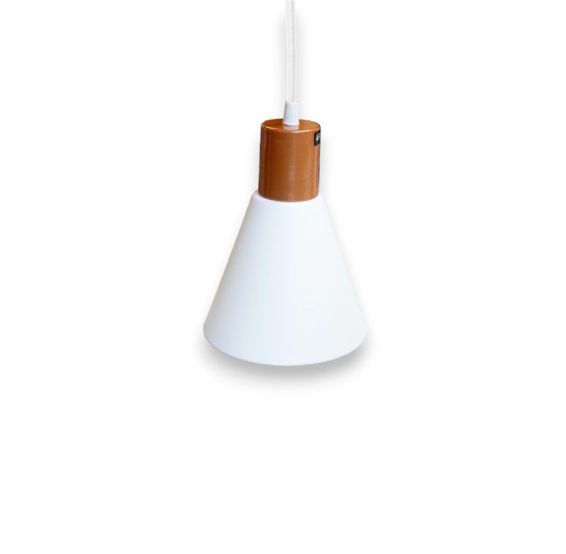 COLGANTE 1 LUZ CONO BLANCO CAPUCHON COBRE CONO H:200MM – 145X145MM