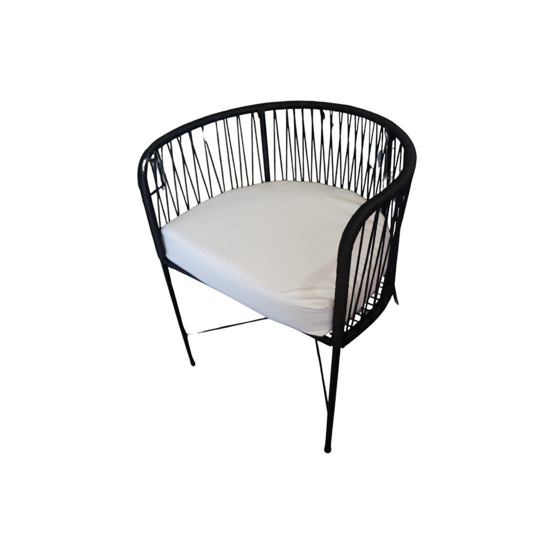 La silla Gervasoni hilo negro con almohadón Roma combina elegancia, confort y un diseño único, ideal para crear espacios con estilo propio tanto en interiores como en exteriores semicubiertos. Su estructura de hierro negro, tejida con hilo plástico resistente, ofrece una silueta envolvente y liviana que se adapta a múltiples estilos de decoración.