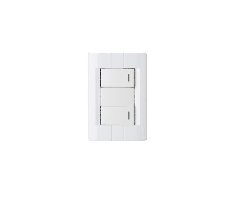Conjunto de tapa – bastidor y dós módulos interruptores armado previamente en fábrica para mejorar y facilitar su instalación.