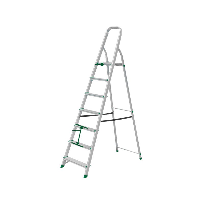 Esta escalera de aluminio con 7 escalones es una excelente opción para realizar tareas seguras, cómodas y eficientes en altura. Gracias a su estructura reforzada en aluminio y plataforma superior de acero, ofrece un equilibrio perfecto entre resistencia y peso liviano.