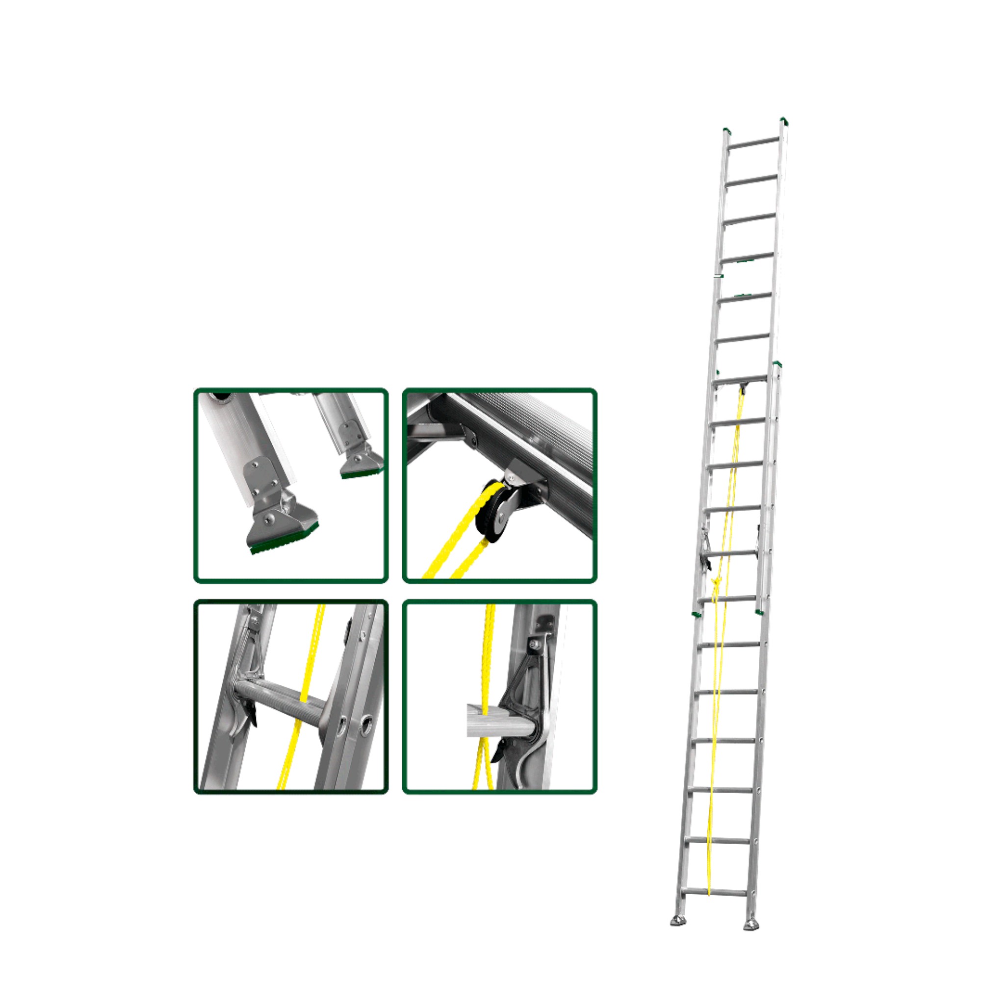 Escalera extensible de aluminio 2×12 escalones – Altura máxima 6,4 m – Capacidad 150 kg