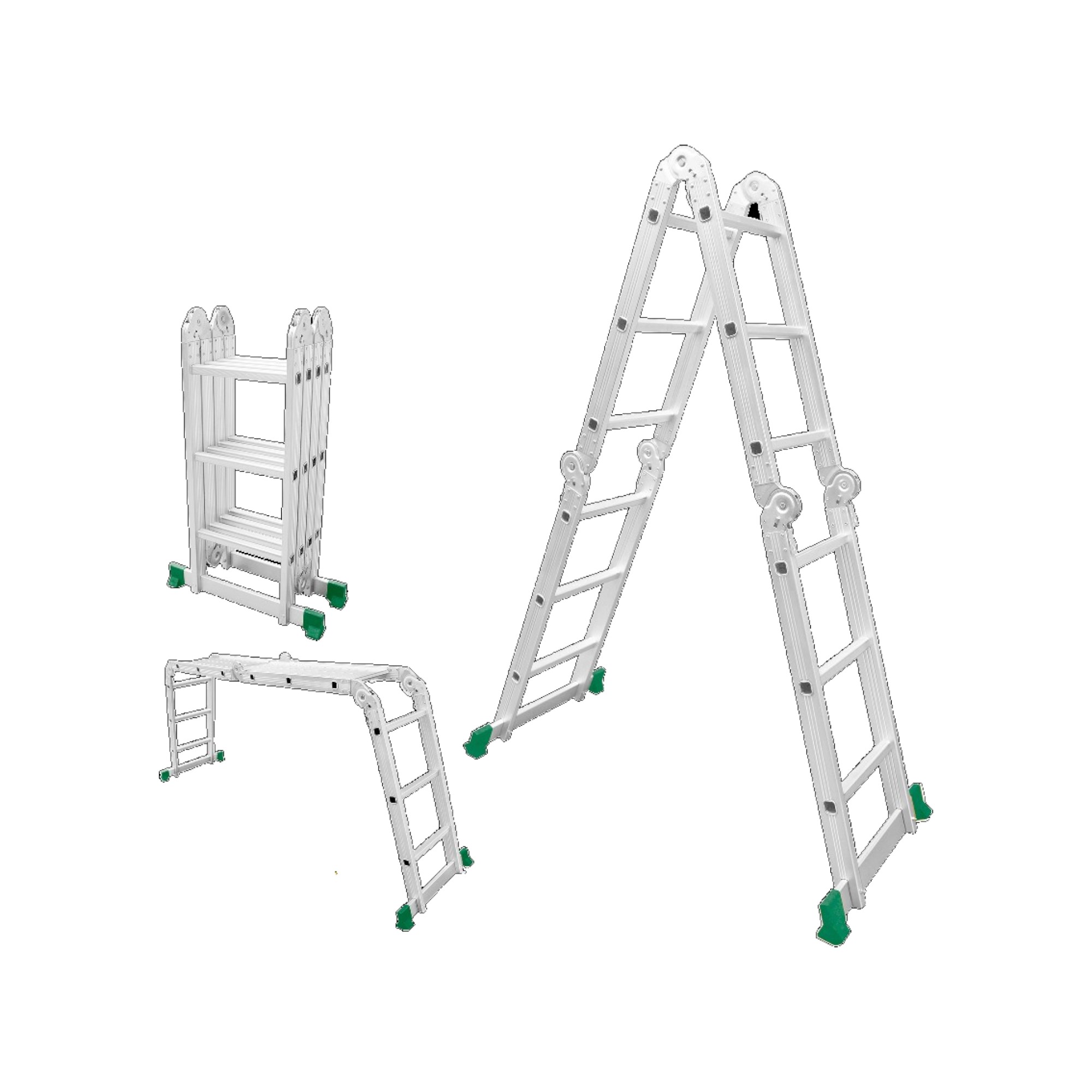 Versátil, resistente y funcional, esta escalera multiuso de aluminio 4×3 es ideal para múltiples configuraciones de trabajo: andamio, escalera recta, tijera o compacta. Gracias a su diseño articulado de 4 tramos con 3 escalones cada uno, permite ajustarse según la necesidad del usuario, ya sea para uso profesional o doméstico.