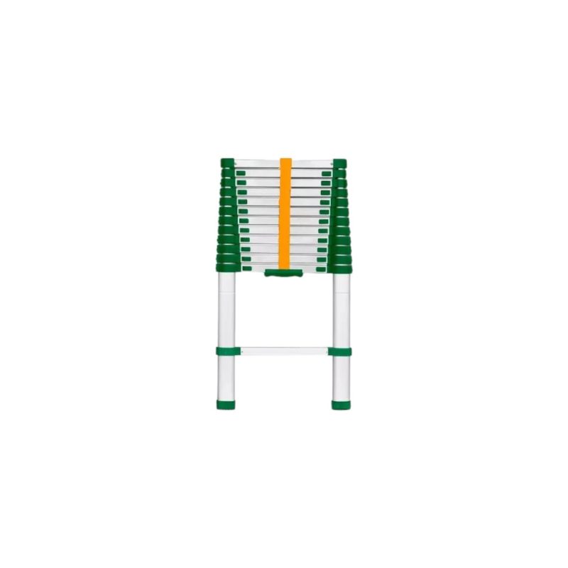 La escalera telescópica de 12 escalones es una solución compacta, versátil y resistente para tareas en altura tanto en el hogar como en el trabajo. Fabricada en aluminio de alta resistencia, soporta hasta 150 kg de carga, combinando seguridad y portabilidad.