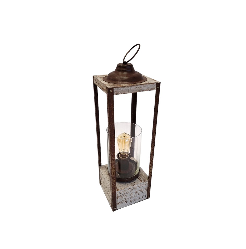 LAMPARA 1 LUZ FAROLA OXIDO TIZA CON VIDRIO IOANA MADERA – GRANDE 17X82CM