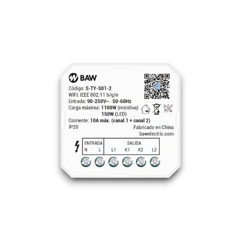 MINI INTERRUPTOR INTELIGENTE WIFI 2 CANALES – 1100W