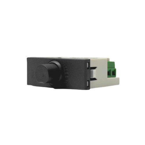 Variador de velocidad por control de fase para ventiladores hasta 200W con corte de corriente y arranque en posición de máxima velocidad. El dispositivo cuenta con la posibilidad de ajustar la velocidad mínima mediante un preset ubicado en la parte posterior del mismo. Para regular la velocidad de ventilador simplemente gire la perilla hasta obtener la velocidad deseada.