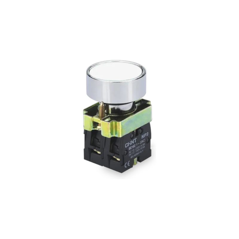 PULSADOR DE CUERPO METALICO DE 22 MM BLANCOCON CONTACTO NA
