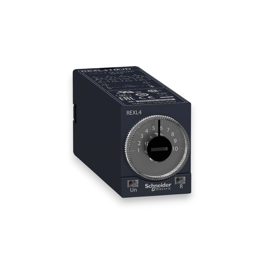 Este relevador temporizador Harmony REXL puede ajustarse entre 0.1 segundos y 100 horas, tiene una potencia nominal de 5 A, tiene 48 mm de ancho y se puede suministrar con 230 V CA. Es un dispositivo enchufable, lo que significa que es rápido y fácil de instalar y necesita herramientas. También ofrece una cubierta sellable, ajustes simples y precisos con recortadores giratorios. Está diseñado para un enchufe de toma, lo que permite una instalación rápida y fácil y minimiza el tiempo de configuración y reparación. Pantalla de estado con 2 LED, inspeccione visualmente el estado de su sistema sin herramientas especializadas.