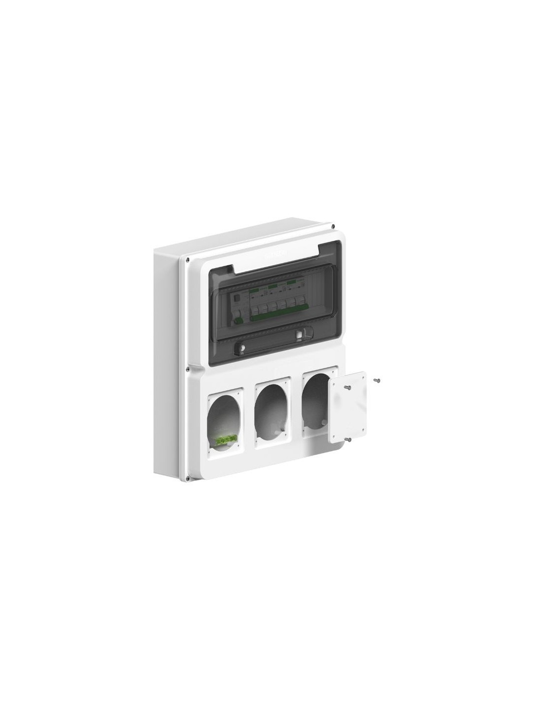 Cajas plásticas estancas IP 65 para alojamiento de módulos din y / o tomas encapsuladas, cuentan con nivel de burbuja para una instalación perfecta. Disponibles en versiones de 2 tomas.